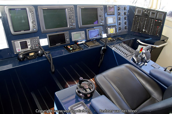 Binnen staan 12 luxe stoelen voor de passagiers aan boord. Daarnaast is er een automaat voor koffie. Voorin de accomodatie is de console voor de besturing van het schip gesitueerd. De besturing kan met 1 joystick gedaan worden door het Dynamic Positioning-systeem van Volvo Penta. Buiten de accomodatie is voorop en achterop het schip dekruimte beschikbaar, waarbij achterop het schip een bankje is geplaatst.