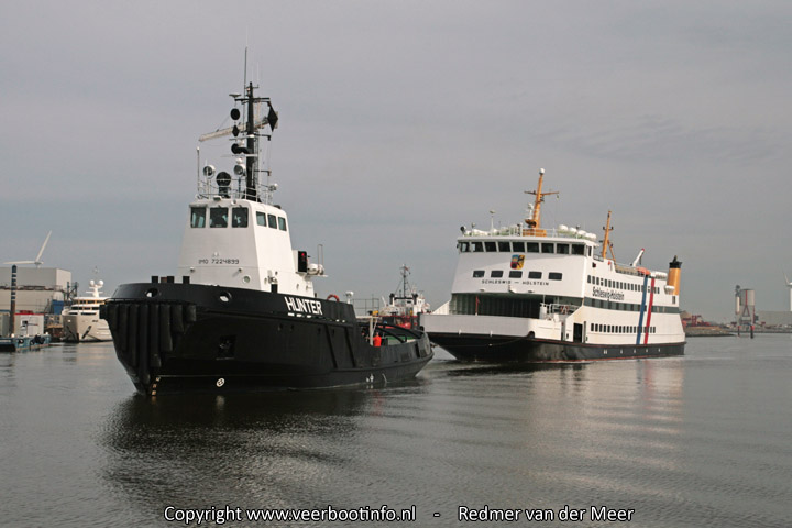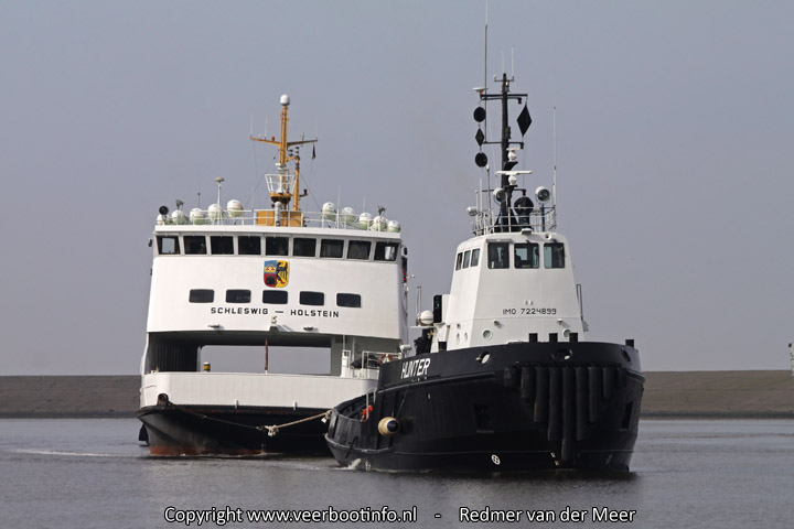 Vanochtend rond 10 uur voer de Hunter met de Schleswig-Holstein de haven van Harlingen binnen. Na een sleeptocht van circa 18,5 uur leverde de Hunter de Schleswig-Holstein af in Harlingen. Om 10.30 werd het schip uiteindelijk afgemeerd aan de kade bij Daalimpex. Daarvoor kwam ook de Hurricane van Rederij Noordgat nog erbij. Uiteindelijk na wat hulp van omstanders om de trossen vast te maken, lag het schip vast.