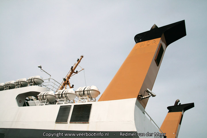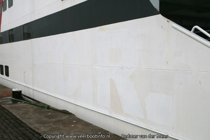 De elementen die overgeschilderd zijn waren nog duidelijk zichtbaar, op de schoorsteen en op de zijde van het schip waren nog duidelijk de letters WDR te herkennen. Ook op het autodek waren nog Duitse teksten te lezen. Alleen de Terschellinger vlag in de mast deed denken aan EVT.